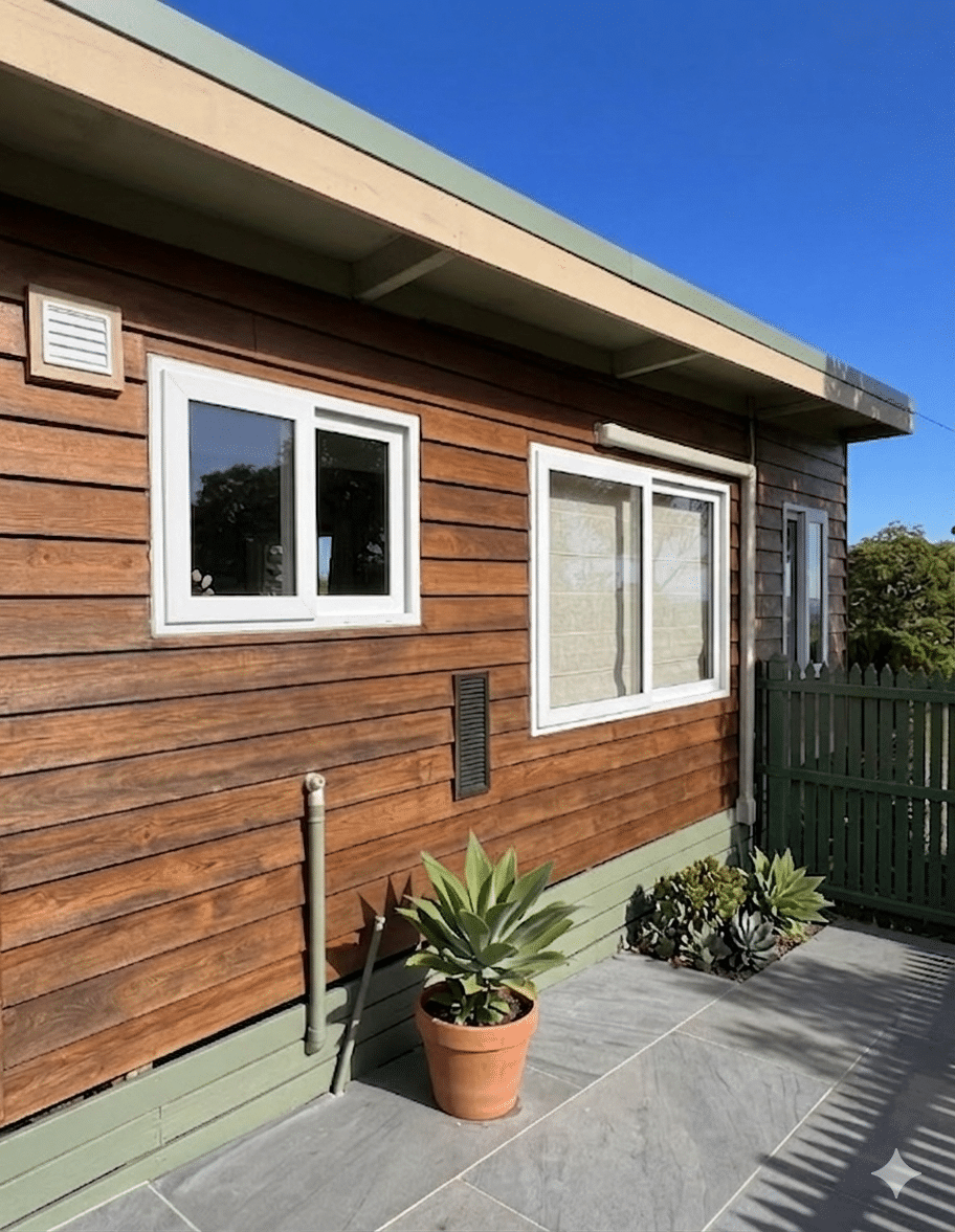 This horizontal action makes sliding windows the preferred choice where space is limited — a sliding kitchen window above the sink, a laundry window opening onto a walkway, or a bedroom slider where curtains hang close to the glass. Unlike casement or awning windows, a slider requires zero clearance outside the wall — nothing protrudes into a walkway, patio, or garden bed.